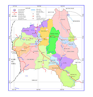 Về hành chánh, Gia Lai nay gồm tỉnh lỵ là thị xã Pleiku, rộng 21 100 ha, dân số năm 2003 là 186 763 người và hai thị trấn tỉnh quản trị là An Khê, Ayun Pa và 14 quận là Â Chư Pah ( Phú Hòa ), Chư Prong, Chư Sê, Đức Cơ ( nguyên là Chư Ty ), Ia Grai ( Ia Kha ), Kbang, Krong Pa ( Phú Túc ), Kong Chrô, Mang Yang ( Mang Giang, Kong Dong ), DakĐoa, Ia Pa, DakPo, Phú Thiện, Chư Pu. Sau năm 1975, tỉnh Gia Lai gồm luôn 3 tỉnh là Kontum , Pleiku và Phú Bổn ( Phú Túc , Krong Pa ? ) mà tỉnh lỵ là Hậu Bổn (tên cũ thời Pháp thuộc là Cheo Reo). Sau đó Kontum tách rời thành tỉnh Kontum riêng biệt, diện tích nay là 9 614,5 km2, nhưng dân số Kontum năm 2009 chỉ có 432 900 người.