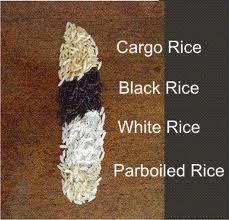nghĩa là hột nguyên vẹn đã bỏ vỏ trấu, không xay , chà xát… làm mất hết vỏ cám phía ngoài , có khi mất tất cả một số protêin chứa nhiều ở tầng aleurone và cả một số ít tinh bột của nhủ phôi nữa . Gạo Màu - colored rice là do số lượng lớn chứa nhiễm sắc thể - anthocyanin tích tụ trong những lớp khác của mô bì , vỏ hạt và tầng aleurone.Trung Quốc còn sản xuất khoảng 400 000 ha gạo màu, hạt gạo màu đỏ, chứa nhiều sắt và kẻm ; gạo màu màu tím chứa nhiều chất vi lượng đồng , magnêsium , calcium , molybdenium và các sinh tố C, B1, B6 và B12 . Gạo Đỏ - Red Rice phần lớn thuộc loại lúa ma ( lúa hoang dại ) với lớp cám bên ngoài màu đỏ. Hầu hết loại lúa đỏ được xay chà trắng để nấu ăn như các loài gạo trắng truyền thống . Khi canh tác và xay chà chưa được cải thiện nhiều như vào thời Pháp thuộc , gạo Việt Nam và Cam Bốt ( nhất là gạo lúa nỗi - riz flottants , floating rice ) xuất khẩu còn lẫn lộn nhiều gạo đỏ , tên gọi là gạo cargo, bán sang Tây Phi Châu và Inđônexia giá thấp. Gạo Đen - Black Rice là loại phôi nhủ đục sáp; hiện có đến 75 000 dòng lúa này Ở Ngân Hàng Gen tồn trữ các dòng lúa thế giới ở IRRI- Phi Luật Tân . Nhiều nhất là ở Trung Quốc , có 46 000 ngàn dòng lúa đen tồn trữ ở Bắc Kinh . Nhóm “ Heino “ Trung Quốc gồm có các loại gạo đen đục sáp màu sắc từ tím nâu đen tím đến đen đậm. Ngoài các gao đen cỗ truyền là “ Trân Châu Đen “ và “ Jiegunuo “ Trung Quốc đã phóng tích phổ biến hơn 54 giống lúa đen cải thiện . Nếp Than là một loại gạo màu tím đen Việt Nam , trước đây dùng nấu rượu bia BGI - Công ty Bia và Nước Đá Đông Pháp , khá tốt, thay một phần nào lúa mach - orge , barley . Theo các nhà nghiên cứu Trung Quốc, các loại lúa đen chứa 37.6 % protêin , 22.4 % chất béo và 176,8% sợi, cao hơn các giống địa phương thông thường, chứa 20 -50 % nhiều hơn lysine , sinh tố B1 , sắt , kẽm , calcium và chất P . Còn “ gạo đen “ ( có khi là một loại lúa ma , hoang dại ) ở vùng Đại Biển Hồ Hoa Kỳ - Canada là một loại lúa khác tông , khác loài với các loài lúa gao trồng trọt trên thế giới Oryza sativa và Oryza glaberrima. Tên loài khoa học là Zizania latifolia hay Zizania aquatica, tuy cùng họ thực vật Oryzeae, tên Anh là wild rice hay Indian ( da đỏ ) rice , và tên Việt Nam là Cù - niểng.